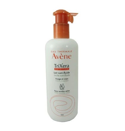 Trixera Nutrition Leite Nutri-Fluido hidrata e repara a pele de toda a família. Tem um elevado poder reconstrutor, restaurando a barreira protetora da pele. Suaviza a pele graças à presença de água termal Avène, suavizante e dessensibilizante, envolvendo-a com uma película protetora. A pele fica macia, hidratada e ligeiramente perfumada. Tem uma textura não oleosa e não colante, com uma absorção rápida. Adequado para bebés, crianças e adultos.