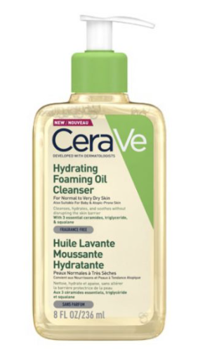 CeraVe Óleo de limpeza Hidratante em Espuma para Pele Normal a Muito Seca é formulado com óleo de esqualano e triglicerídeos que repõem e mantêm a hidratação natural da pele. Contém, também, 3 ceramidas essenciais que ajudam a manter a barreira protetora da pele. Adequado para adultos e bebés a partir de 1 mês.