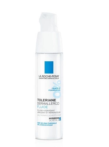 La Roche Posay TOLERIANE Dermallergo Fluído hidrata e apazigua os desconfortos cutâneos, reduz a vermelhidão, repara a barreira cutânea e protege contra os agressores externos. Combina sphingobioma, um ingrediente que ajuda a suportar o funcionamento do microbioma, neurosensine, um ingrediente apaziguante que atua sobre os sinais de irritação da pele, e água termal de La Roche-Posay, apaziguante e anti irritante natural.