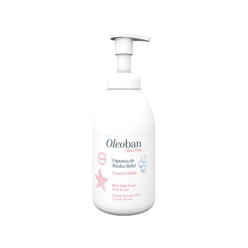 Oleoban Bebé Espuma de Banho é um cuidado 2 em 1 de corpo e cabelo para recém-nascidos, bebés e crianças. Formulado com agentes de limpeza e emolientes suaves que respeitam a pele do bebé e melhoram a sua flexibilidade. Com hidrolisado de proteína de soja para um cabelo fácil de pentear, suave e brilhante. Produto compatível com a pele e couro cabeludo sensível do bebé. Sem sabão.