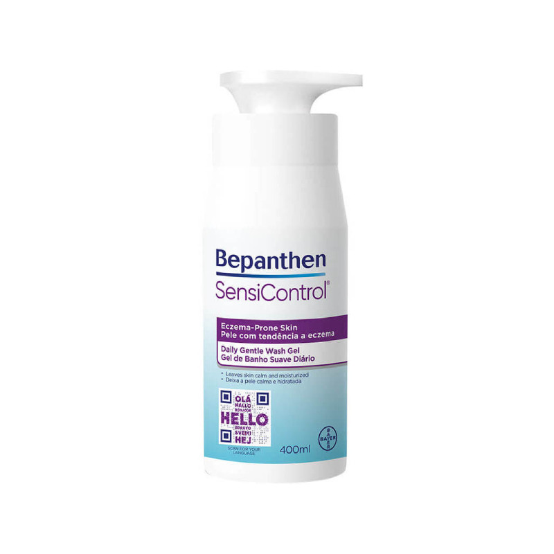 Bepanthen SensiControl Gel de Banho é um cuidado de banho suave de nova geração para a higienização diária da pele sensível e com tendência a eczema, que deixa a pele calma e hidratada. A sua fórmula contém um prebiótico que demonstrou (in-vitro) estimular a microflora protetora da pele. Contém ainda Provitamina B5 e vitamina B3, que apoiam o processo de regeneração da pele. Pode ser utilizado em bebés a partir de 1 mês, crianças e adultos. Testado sob controlo pediátrico.