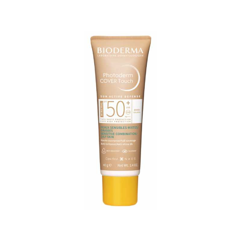 Bioderma Photoderm Cover Touch Claro Dourado FPS50+ é um protetor solar de rosto, indicado para pele mista a oleosa e/ou com imperfeições.  Fórmula: