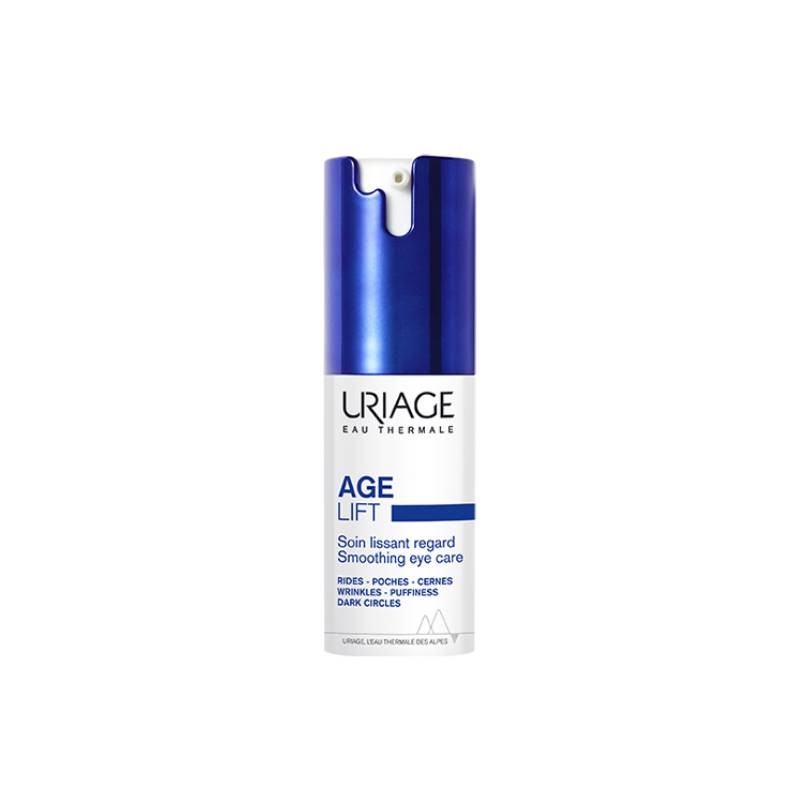 Uriage Age Lift Contorno de Olhos é um cuidado que atua simultaneamente sobre as rugas e firmeza do contorno dos olhos. Alisa e hidrata o contorno ocular. Reduz a aparência das rugas, papos e olheiras, para um olhar mais descansado. A sua fórmula rica em ingredientes ativos antienvelhecimento [Retinol** + Ácido Hialurónico] reduz a aparência das rídulas e rugas e atua na perda de firmeza e tonicidade. Eleva as pálpebras para um efeito lifting e alisa o contorno dos olhos. Os papos e olheiras são visivelmente reduzidos pelos ingredientes ativos descongestionantes com efeito blur: Sulfato de Dextrano e pérolas. Testado oftalmologicamente.  Como utilizar: massajar suavemente no contorno dos olhos, de manhã e/ou à noite. Para todos os tipos de pele, mesmo sensível.