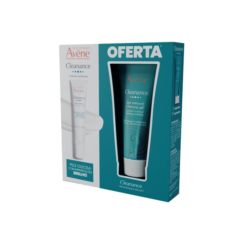 Avène Cleanance Cuidado Matificante Oferta Gel de Limpeza é um pack composto por 2 cuidados: Avène Cleanance Cuidado Matificante (40ml) e Avène Cleanance Gel De Limpeza (200ml).