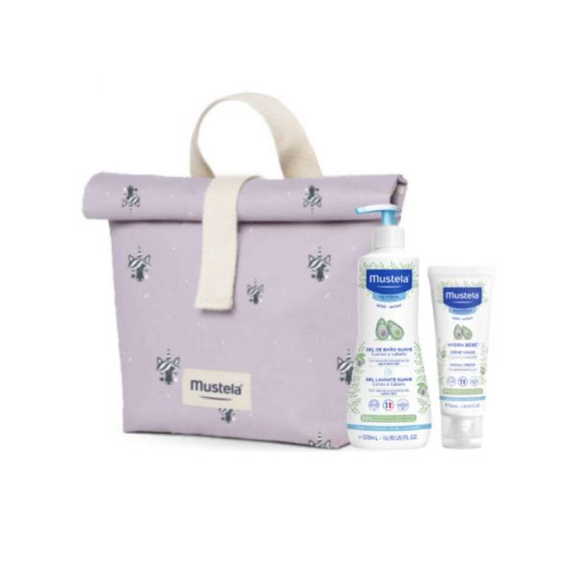 Mustela Bebé Lancheira Térmica Lavanda é composta por 2 cuidados: Mustela Bebé Gel Lavante Suave (500ml) e Mustela Bebé Hydra Creme de Rosto (40ml). Mustela Bebé Gel Lavante Suave é um cuidado de corpo e cabelo, formulado para recém-nascidos, bebés e crianças. Limpa delicadamente a pele e o couro cabeludo, acalma e compensa os efeitos secantes do banho. Não arde nos olhos. Mustela Bebé Hydra Creme de Rosto é um cuidado de rosto com ação hidratante, indicado para bebés e crianças, desde o nascimento. Incluindo bebés provenientes da neonatologia. Hidrata de forma prolongada durante 24 horas e protege a pele contra agressões externas.