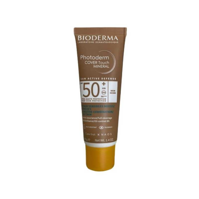 Bioderma Photoderm Cover Touch Mineral Brown FPS50+ é um cuidado solar mineral com acabamento castanho e proteção muito elevada, indicado para pele mista a oleosa e/ou com imperfeições. A fórmula associa a patente Fluidactiv; Ácido Glicólico; e Salicílico, que melhora a qualidade do sebo e limita o aparecimento de novas imperfeições. Proporciona 8h de controlo da oleosidade e deixa a pele respirar. Sem perfume. Tolerância cutânea e ocular. Resistente à água, calor, alta humidade e transferência.