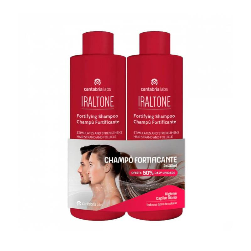 Iraltone Champô Fortificante Oferta 50% na 2ª Unidade é um pack promocional composto por 2 embalagens de 400ml.