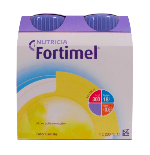 Fortimel Solução oral é um suplemento nutricional completo com alto teor proteico e energético. Indicado para satisfazer as necessidades nutricionais de quem não consegue alcançar as suas necessidades proteicas e energéticas com a alimentação habitual. Aconselhado para geriatria, perda de peso e/ou apetite, pré e/ou pós-operatório, gravidez, entre outros. Sem glúten.