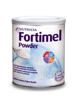 Fortimel Powder Neutro é um suplemento em pó com alto teor proteico, com vitaminas e minerais. Está indicado para situações de perda moderada de peso e/ou apetite e para quem não tolera suplementação oral líquida. Sem glúten.