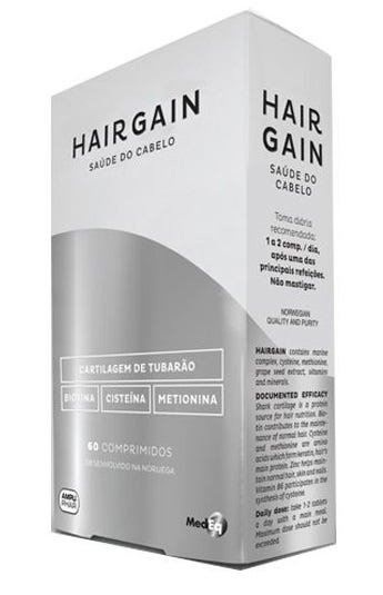 Suplemento alimentar com cartilagem de tubarão, extrato de grainha da uva, aminoácidos, vitaminas e minerais, que contribuem para o crescimento, fortalecimento e controlo da perda excessiva de cabelo.