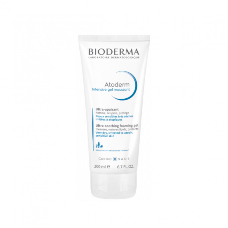Bioderma Atoderm Intensive Gel Moussant é um cuidado de limpeza suave, anti-prurido para a pele muito seca irritada e atópica do bebé, criança e adulto. Fórmula: