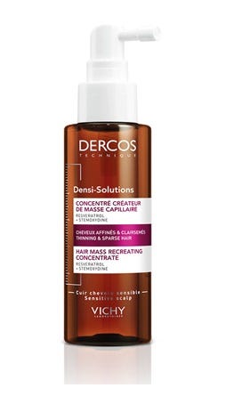 Vichy Dercos Densi-solutions concentrado redensificante é formulado com Stemoxydine, Resveratrol, Rhamnose, Vitamina E e polímeros de styling, para uma ação fortificante, estimulante, protetora e volumizante. Ideal para o cabelo fino e enfraquecido, sem volume e com diminuição da massa capilar. O cabelo fica mais preenchido e denso. Apresenta uma textura leve e refrescante. Fácil aplicação. Sem sulfatos e silicones. Testado dermatologicamente.