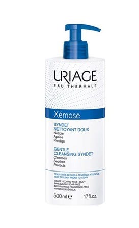 Uriage Xémose Syndet apresenta uma base lavante extra-suave, a pH fisiológico, que elimina todas as impurezas da pele sem agredir, devolvendo-lhe todo o conforto. Formulado com Água Termal de Uriage, naturalmente rica em sais minerais e oligoelementos, que apazigua a pele mais seca. Possui agentes sobreengordurantes específicos, que evitam o efeito secante da água e proporcionam conforto à pele. Sem perfume e sabão. Hipoalergénico. Não comodogénico.