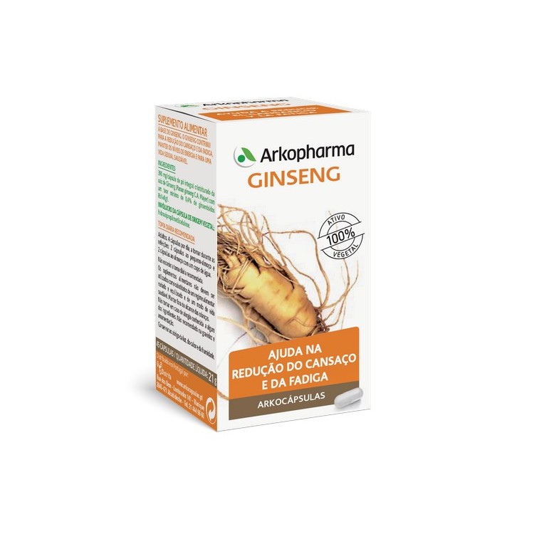 ARKOCÁPSULAS Ginseng é um suplemento alimentar à base de Ginseng. O Ginseng contribui para a redução do cansaço e da fadiga, manter os níveis de energia e para uma vida sexual saudável.