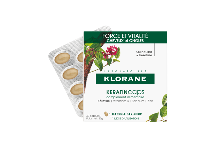 Suplemento alimentar com queratina, vitaminas B, selénio e zinco, que contribuem para a manutenção do cabelo forte e saudável.