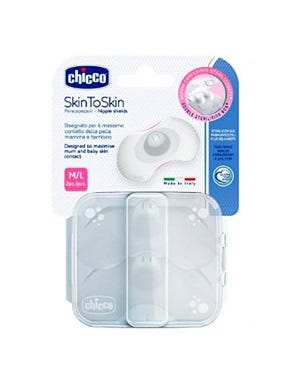 Chicco Skin to Skin Protetor Mamilo permite uma maior proteção do mamilo da mãe. A forma alongada garante o máximo conforto e o silicone suave e fino permite uma ótima aderência e um ajuste perfeito. As áreas em relevo nos cantos, ajudam a colocar e a remover os protetores de seios de forma fácil e correta. A tetina ligeiramente achatada, foi desenvolvida para garantir uma pega natural no mamilo. Os cortes especiais permitem que o leite flua naturalmente e de forma contínua. Contém uma caixa para a esterilização dos protetores de mamilo.