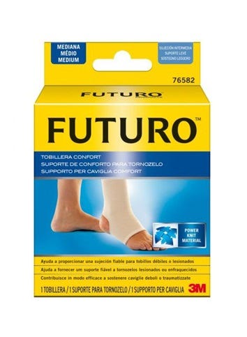 Futuro Suporte Elástico Tornozelo está desenhado para lhe proporcionar o maior conforto. O formato em manga fina acompanha a forma natural do tornozelo para uma adaptação e proteção da articulação ideais. A sua composição em tecido, permeável ao ar, com compressão de dupla elasticidade garante para um maior conforto. Adapta-se fácil e discretamente no interior do sapato. Pode ser utilizado no tornozelo esquerdo ou direito.